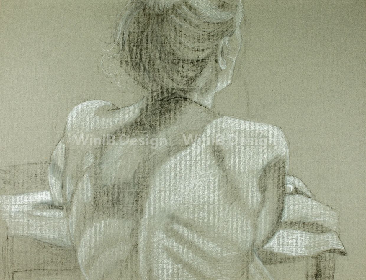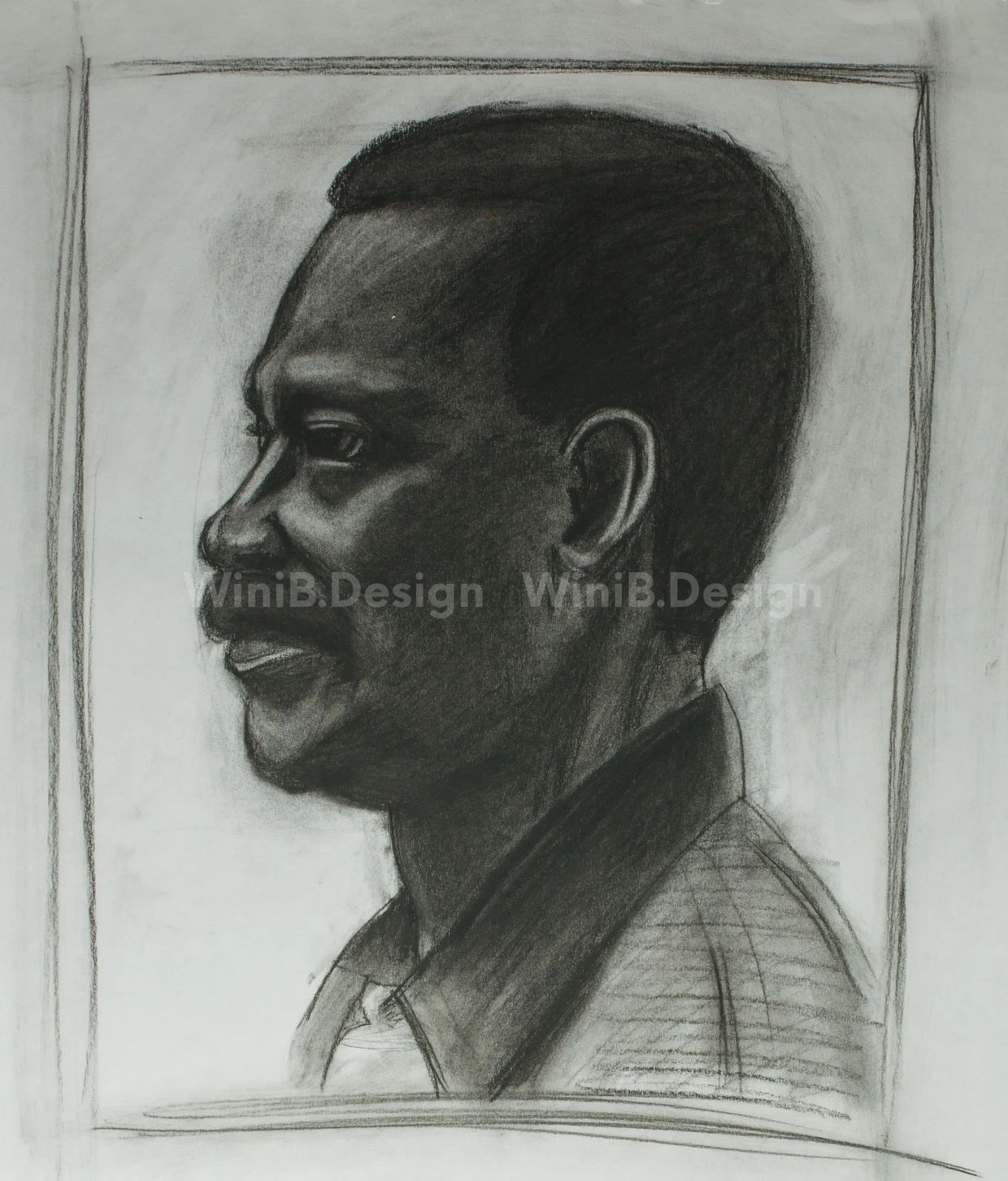 Charcoal pencil on textured toned paper. Approx. 18” X 24”