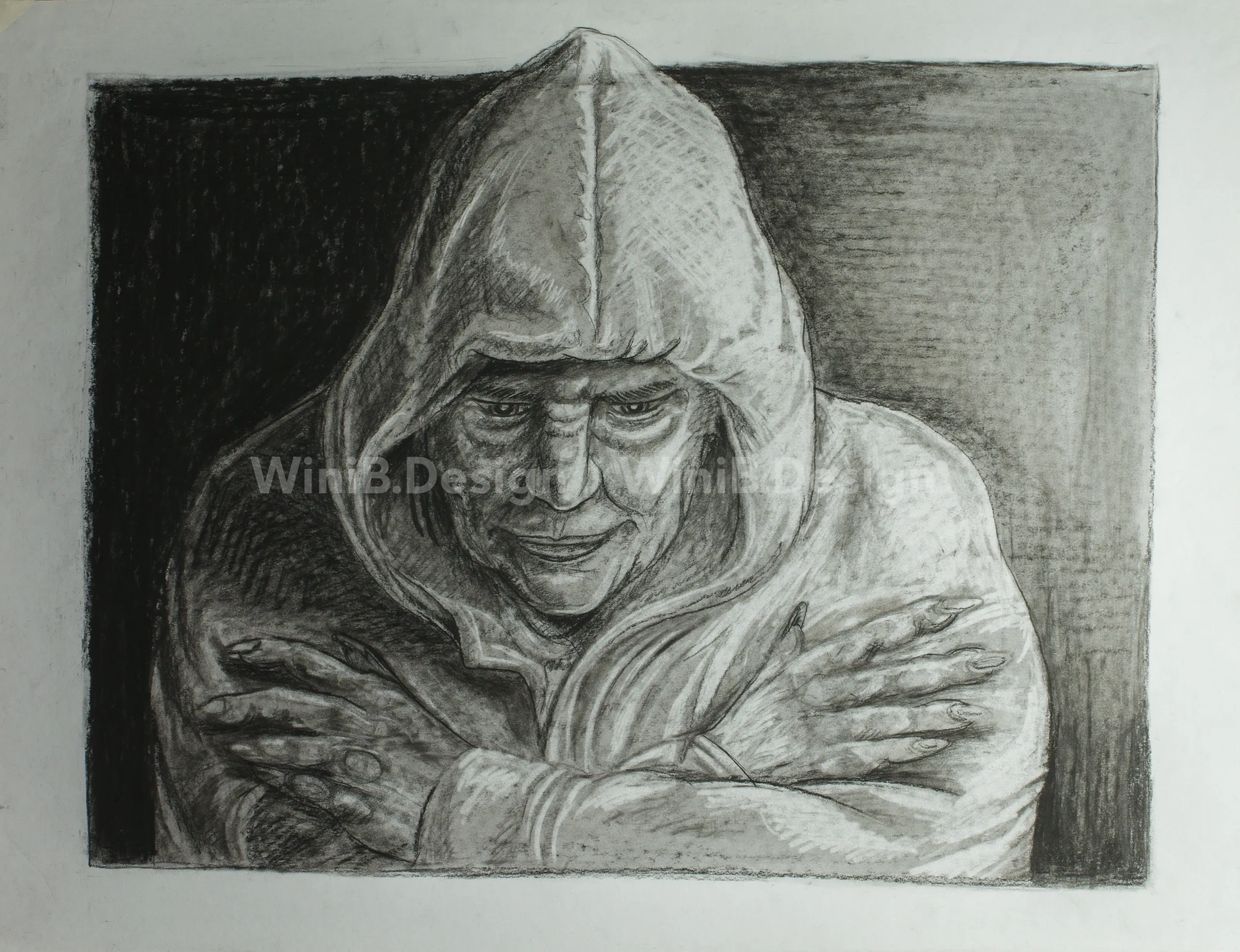 It recalls one of many happy memories with my Mom, who has since passed on. We were laughing so hard the whole time as I was attempting to photograph her for reference shots. I was trying to coach her as to what moods I wanted her to exhibit; anger, fear, a threatening look, to which neither of us could hold a straight face and we’d burst out laughing! I still have her reference shots filed away somewhere, and I can still clearly recall that afternoon…